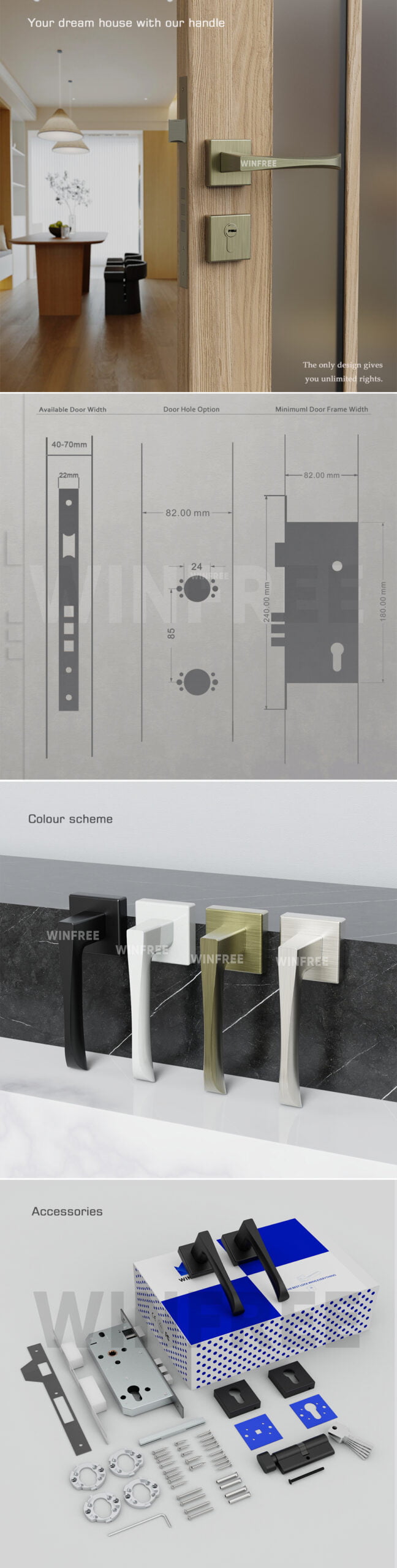 Home Product DOOR HANDLE LOCK WINFREE Zinc Alloy European Mortise Interior Wooden or Steel Door Handle Lock
