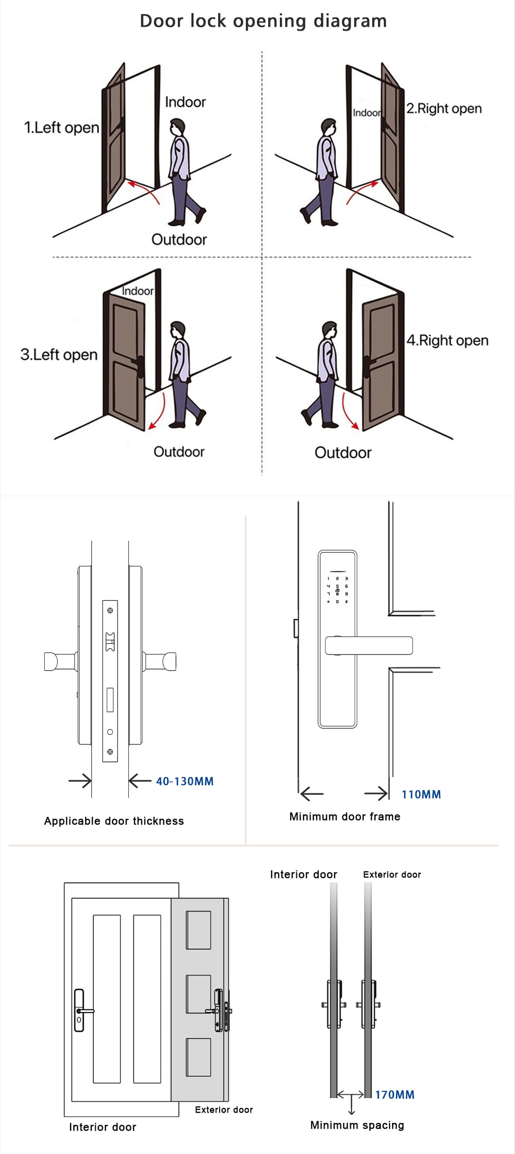 5 in 1 Unlocking: RFID card, passcode, App(TTlock), key