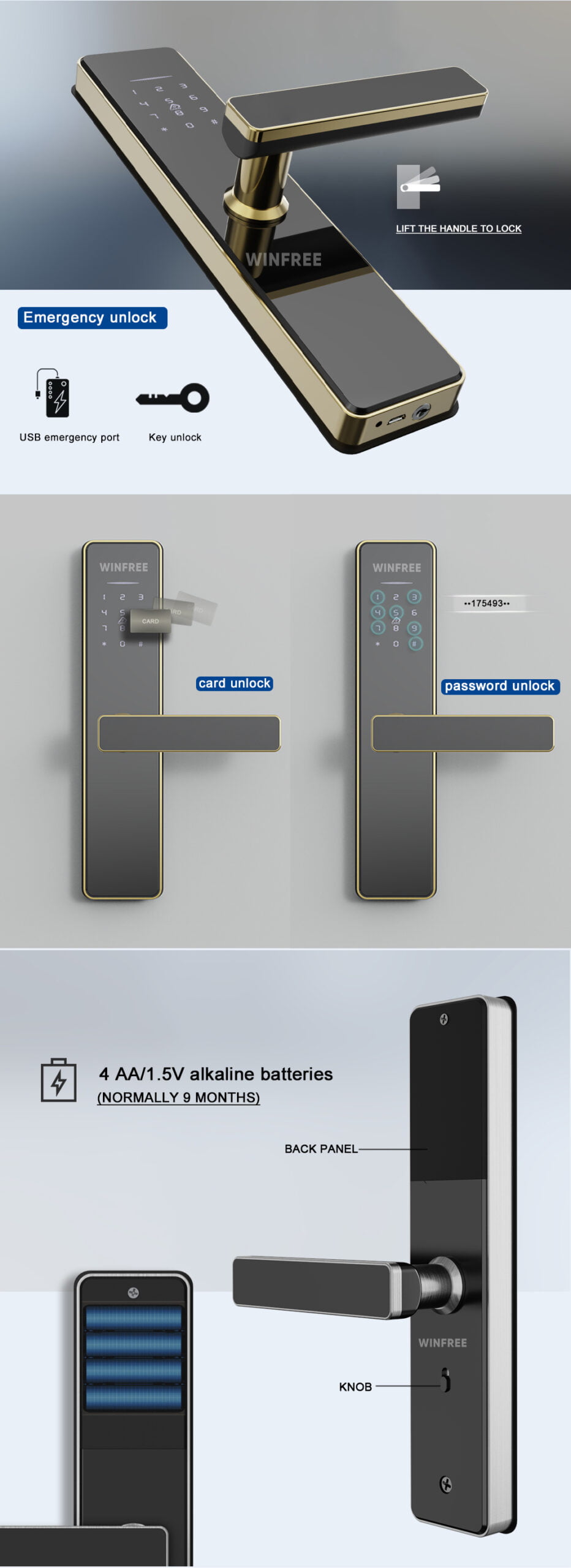 5 in 1 Unlocking: RFID card, passcode, App(TTlock), key