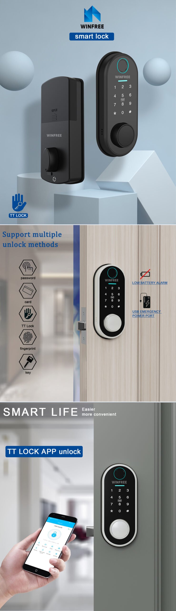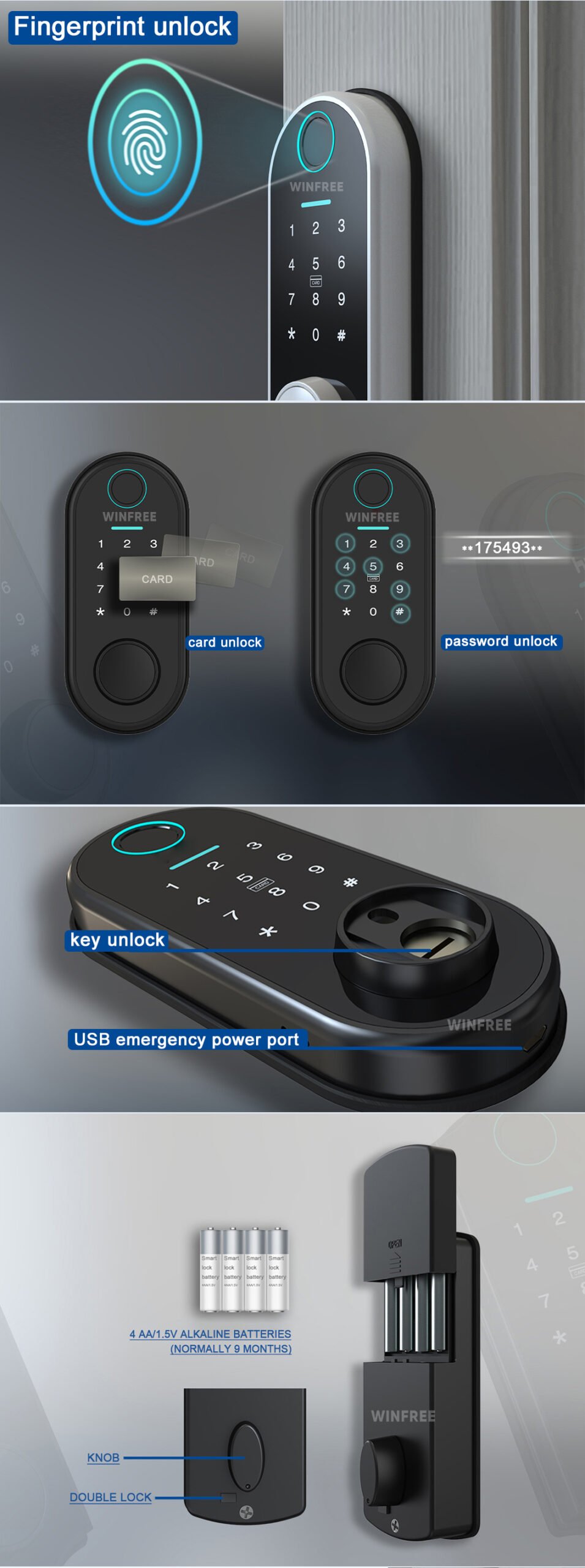WINFREE Smart Slim Lock Tuya Bluetooth Keyless Card Passcode Fingerprint Smart Home Lock