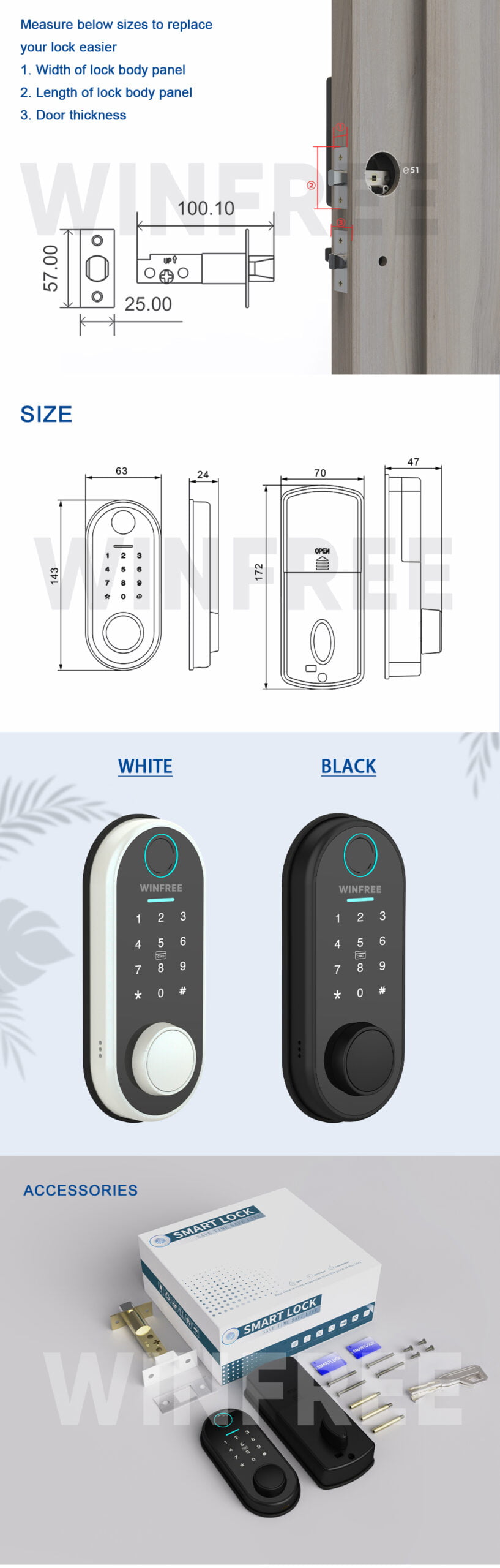 WINFREE Smart Lock Fingerprint Door Lock Passcode Card Tuya Bluetooth Bedroom Wooden Latch Deadbolt Door Lock